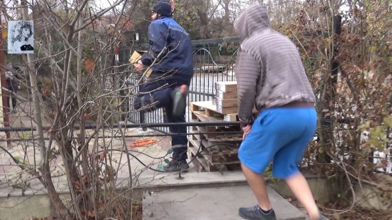 В момента тази тясна пътека реално не стига до общинската улица, защото опънати червени ленти забраняват преминаването. Поради ремонт на опасна сграда, която се руши върху територията на държавния имот, е забранено преминаването към общинската улица. Имало случаи дори на пропаднали колички с бебета на това място.