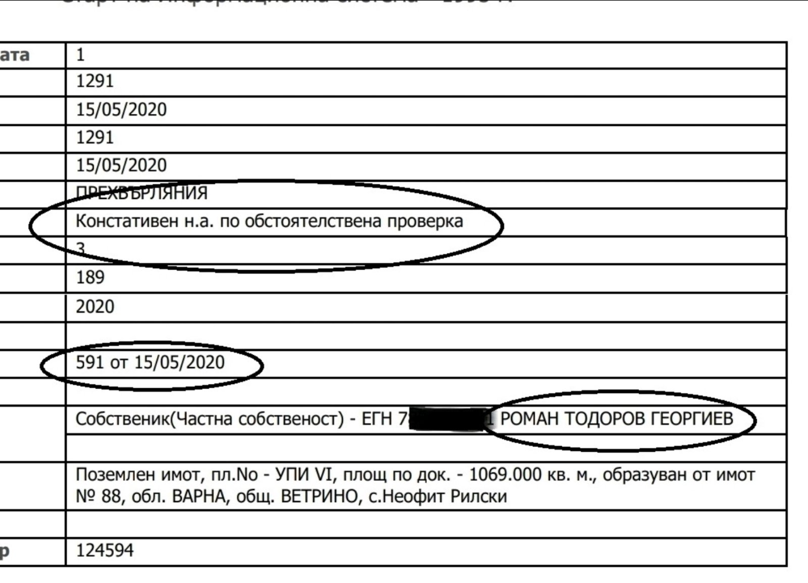 В този случай, за да се стигне до истината няма да е никак трудно, защото получихме уверения, че Роман Георгиев отдавна е избягал от Неофит Рилски и бил в конфликт с Ивелин Михайлов. Като цяло бил честен човек, няма да е проблем да разкаже истината пред разследващите органи на реда. Все пак цяло село знае, че Роман Георгиев не е стъпвал през 2010 година в селото, не е стъпвал във въпросния имот без къща, камо ли да живее в него и да му заплаща данъците. Въпреки това, през месец март, 2020 година, той придобива имота с неверни документи за владеене.